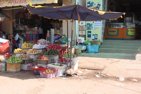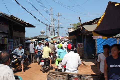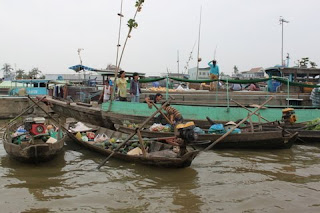 Le matin départ pour le marché flottant de Can Tho à bord d'un bateau naviguant entre des centaines de bateaux de toutes tailles vendant fruits et légumes...une circulation d'une extrême densité...on pensait que seules les routes étaient emcombrées et sans règles et bien cette idée, ils l'ont aussi reprise pour la circulation des bateaux sur le mékong...un lieu haut en couleurs...