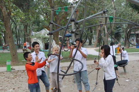 Pour info, durant notre séjour à HCMC, il y a dans le parc en face de l'hotel un festival mondial du gout...sympa mais les vietnamiens n'aiment les concerts et spectacles que très fort et ce jusque tard dans la nuit à un tel point que pour la chanteuse qui hurlait dans son micro on eu envie à un moment de lui descendre des anti-douleurs tellement "ses chants" semblaient douloureux...aussi bien pour elle que pour nous...