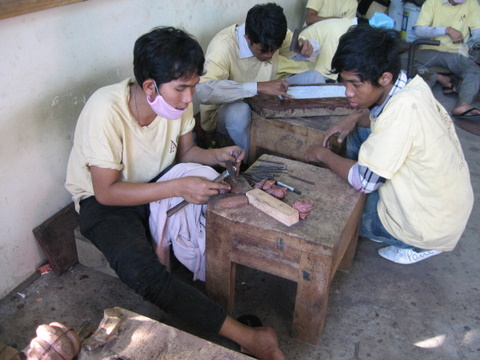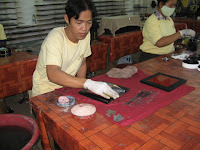 Nous sommes allés dans des restaurants qui offrent aux enfants des rues des formations (friends à Phnom Penh) dans la restauration, des hôtels (Sala Baï à Siem Reap) qui forment à 4 métiers de l'hôtellerie, ou des ateliers d'artisans qui aident les jeunes démunis ou les ethnies en difficulté à développer leurs talents, qui vendent leur production et la réinjecte pour les formations "les artisans d'Angkor" (un idéal, un rêve, qui me touche vous l'aurez compris..., aider l'autre à être autonome et à choisir...) bref..........