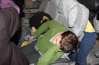 Julian a depuis quelques semaines un appareil dentaire et dans la conversation pendant le repas de ce soir, Caroline demande à Julian innocemment "mais où est ton appareil" et le regard étonné de Julian commence à nous affoler : "euh, c'est pas toi qu'il l'a ramassé au repas de ce midi" ...donc branle-bas-de-combat dans les cuisines du resto (heureusement qu'on a mangé le soir dans le même resto que ce midi) à fouiller dans les poubelles du resto dehors sur le trottoir avec nos téléphones comme lampe de poche et après 15min de fouilles intensives à 4 personnes, Caroline le retrouve entre les épluchures et les restes de repas de ce midi...beurk...la patronne du restaurant après avoir cherché avec nous nous propose même de le désinfecter...et après ça on pourra pas dire que ce n'est pas beau l'amour parental...