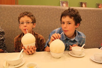 une matinée extrêmement studieuse intervient un petit relâchement de quelques jours, auto-dictée et 30 séquences pour Télio, DM de Français, exercices de maths pour Julian et cahier de calcul pour Maël...se réveillant relativement tôt, les garçons peuvent travailler avant même l'heure du petit déj et surtout avant le réveil d'Andrin, car il est impossible de faire travailler Maël si son cousin est là...on le comprend...il veulent en profiter.