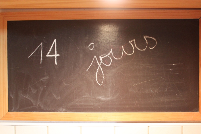 C'est une photo du tableau dans la cuisine que chaque jour, les garçons s'empresse d'actualiser.